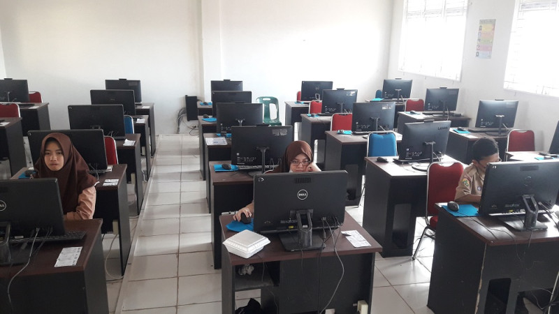 Siswa - siswi fokus mengerjakan soal ujian perlombaan