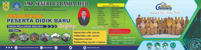 Mari bergabung bersama kami dengan daftarkan putra - putri anda di SMP Negeri 13 Banda Aceh.