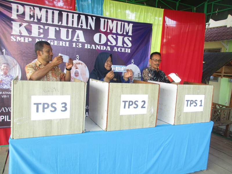 Kegiatan dibuka dengan arahan dari kepala SMP Negeri 13 Banda Aceh, yang menghimbau kepada seluruh peserta didik untuk menggunakan hak suaranya dan memilih calon ketua osis yang selaras dengan visi misi yang diembannya, sehingga dapat terpilihnya ketua osis yang memiliki kredibilitas yang tinggi untuk memimpin peserta didik.