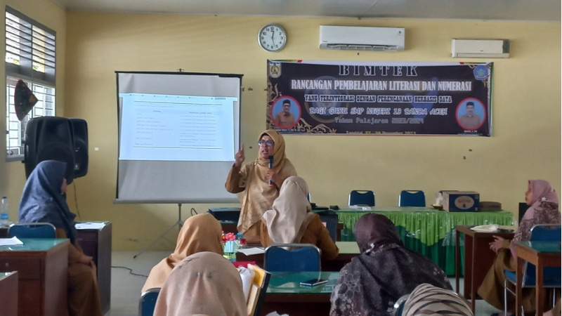 SMP Negeri 13 Banda Aceh - Hari Selasa (9/1) SMP Negeri 13 Banda Aceh menggelar Workshop Penyusunan Rencana Hasil Kerja (RHK) SKP Tahun 2024 dalam Platform Merdeka Mengajar (PMM). Acara ini diikuti oleh seluruh Guru dan Tenaga Kependidikan baik yang berstatus PNS, PPPK serta Honorer. Adapun narasumber dalam kegiatan kali ini adalah pengawas SMP Negeri 13 Banda Aceh ibu Fadhillah, S.Pd., M.Pd.