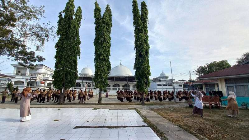 SMP Negeri 13 Banda Aceh melaksanakan kegiatan rutin Senam Profil Pelajar Pancasila